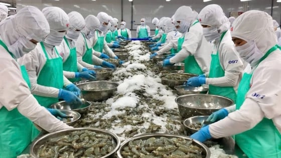 Mặt hàng thủy sản xuất khẩu chủ lực của Việt Nam sang Mỹ là tôm, chiếm khoảng 20% tổng kim ngạch xuất khẩu tôm của Việt Nam sang các nước. Ảnh: Minh Hoàng.