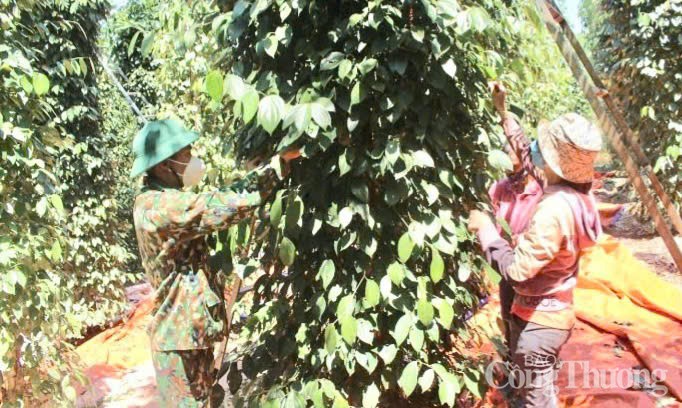 | Nông dân tỉnh Đắk Nông thu hoạch tiêu |