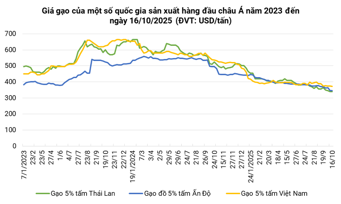 Giá gạo 5% tấm của Thái Lan được báo giá ở mức 335–340 USD/tấn, giảm so với 340 USD/tấn của tuần trước và là mức thấp nhất ghi nhận được kể từ tháng 10/2007.