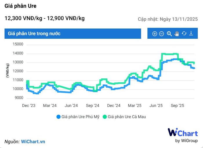 Trong đó, phân urêNinh Bình, Phú Mỹ được các đại lý bán ra với cùng mức giá khoảng 610.000 – 650.000 đồng/bao.