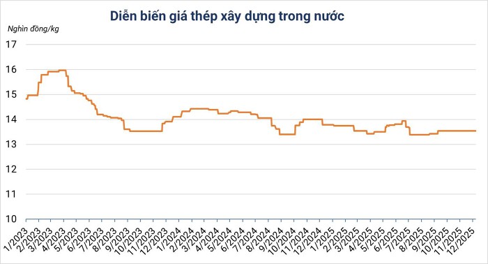 Trong nước, các doanh nghiệp bình ổn giá thép xây dựng. Cụ thể Hòa Phát báo giá thép CB240 và CB300 ghi nhận lần lượt 13.500 đồng/kg và 13.090 đồng/kg. Việt Đức chào giá CB240 ở mức 13.350 đồng/kg và CB300 12.850 đồng/kg.