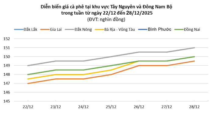 Trong khi đó, Gia Lai ghi nhận mức tăng 2.500 đồng/kg, lên 149.500 đồng/kg – tiếp tục là địa phương có giá thấp nhất.