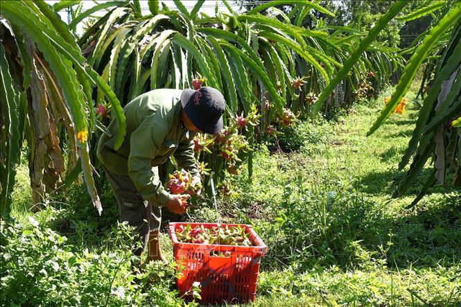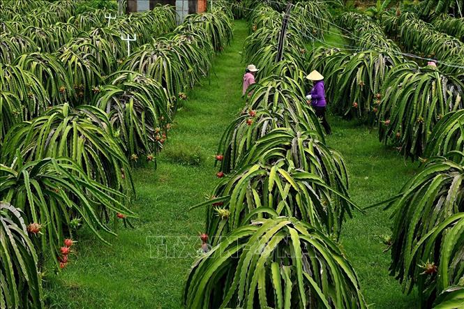 Nhà vườn xã Tuyên Quang (tỉnh Lâm Đồng) đang thu hoạch thanh long. (Ảnh: Hồng Hiếu).