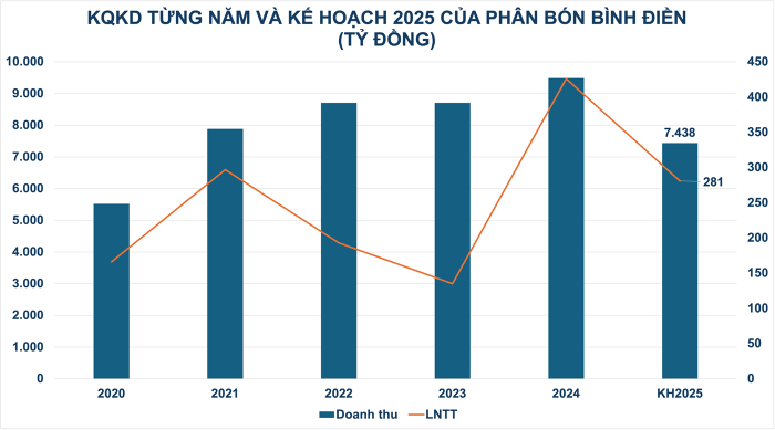 Sau năm 2024 đạt kết quả kinh doanh ấn tượng, Phân bón Bình Điền bước vào năm 2025 với kế hoạch lợi nhuận và doanh thu thận trọng, đều thấp hơn đáng kể so với năm trước do lo ngại những biến động khó lường từ thị trường nông sản, nguyên vật liệu và bối cảnh kinh tế vĩ mô.