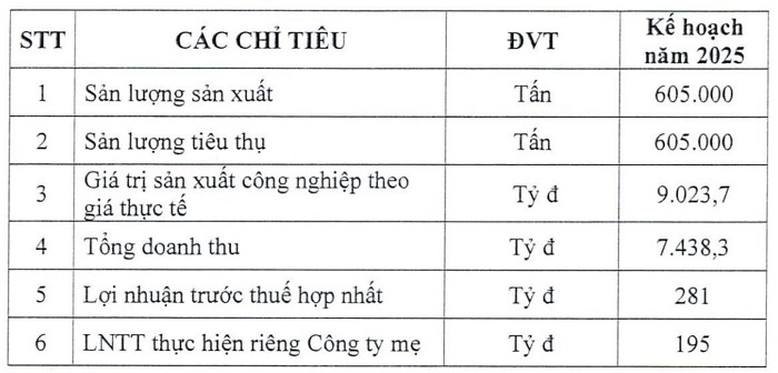 Cụ thể, công ty đặt sản lượng tiêu thụ mục tiêu là 605.000 tấn, giảm 17% so với năm trước; tổng doanh thu dự kiến 7.438 tỷ đồng, giảm 22%; lợi nhuận trước thuế đặt kế hoạch 281 tỷ đồng, giảm gần một nửa. Mức chi trả cổ tức cũng được điều chỉnh từ 30% xuống còn 20%.